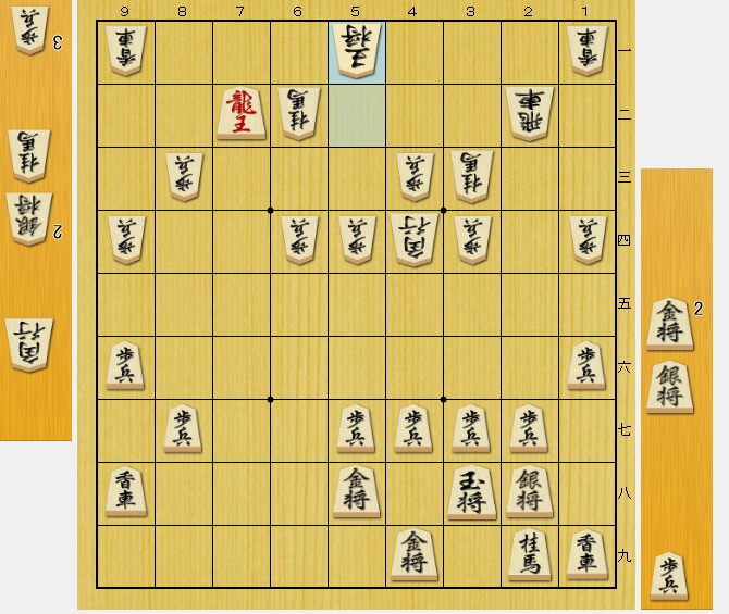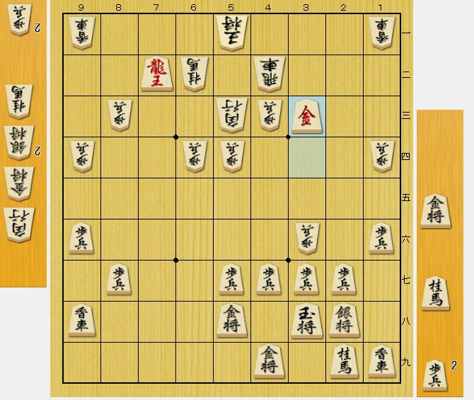 桂馬を入手しつつ、敵玉の逃げ道を狭くする手。