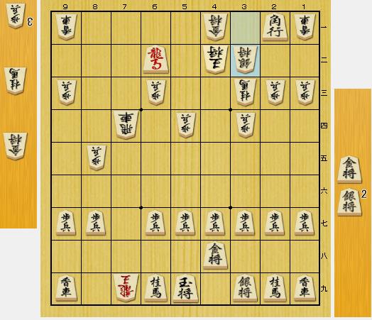 →☖同玉→☗4四金→☖3二玉→☗3三金→☖同玉