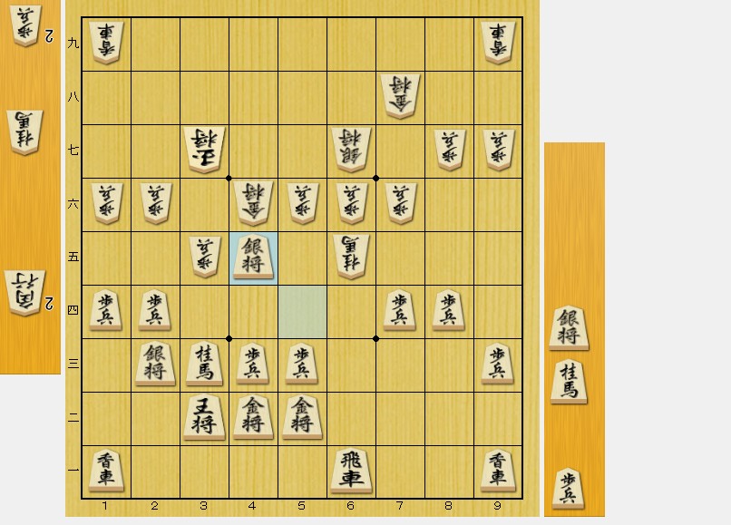 △45桂 の両取りを狙った手。 これには ▲46銀。