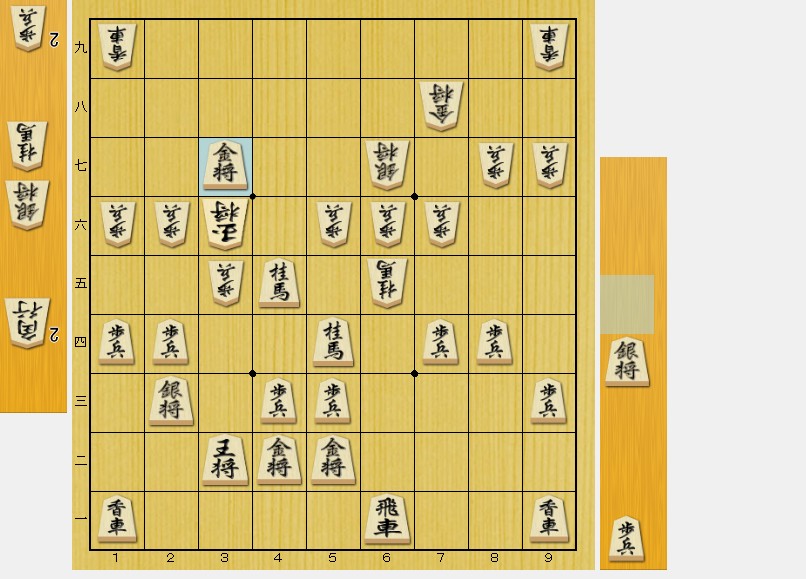 以下、▲同金、△同桂、▲46玉、△54桂、▲36玉、△37金 から。