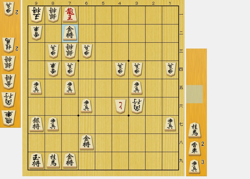 あとはひたすら、相手の受け駒の、金と飛車を削っていけば、いずれ受けなしになる…!