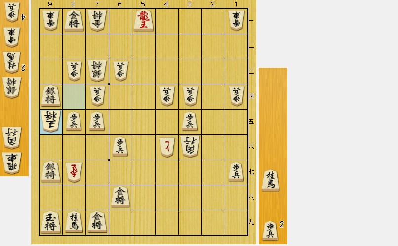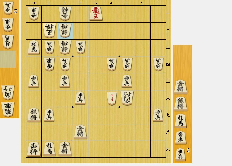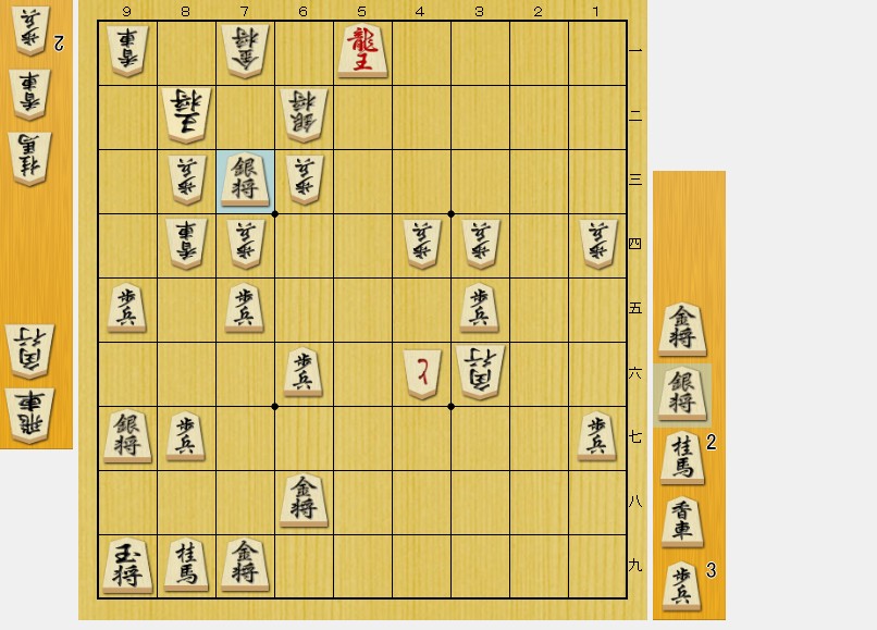 ▲91銀、△同玉、▲71龍、△81香合、▲同桂成、△同銀、▲72金