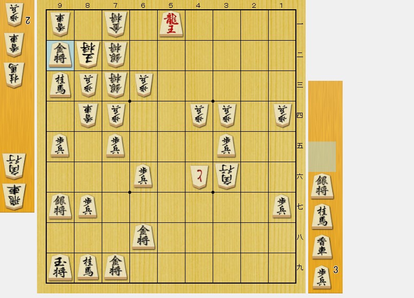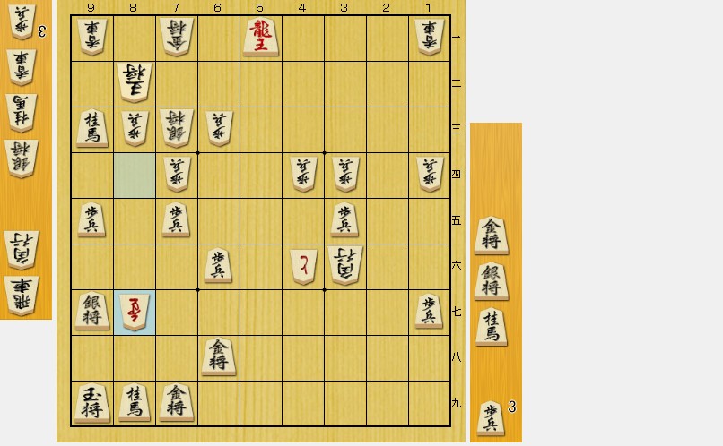 △87香成 以下、▲81金、△93玉、▲94銀、△84玉 と