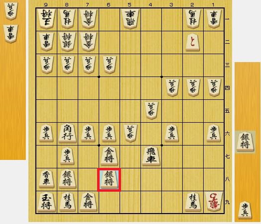 →☗同銀→☖5五銀→☗同銀→☖同角