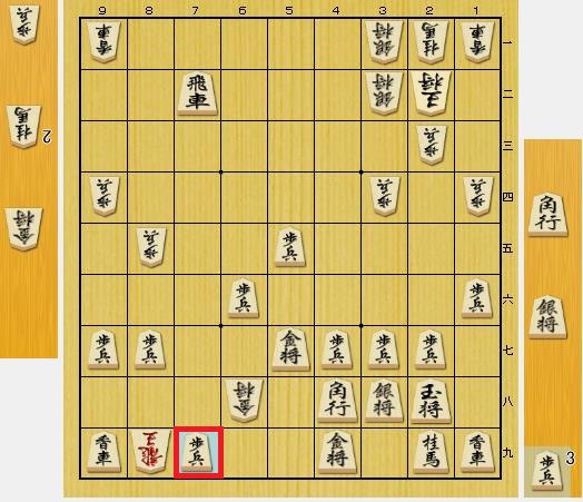 今回はその前に☗7二飛と敵陣に打ち込んだ