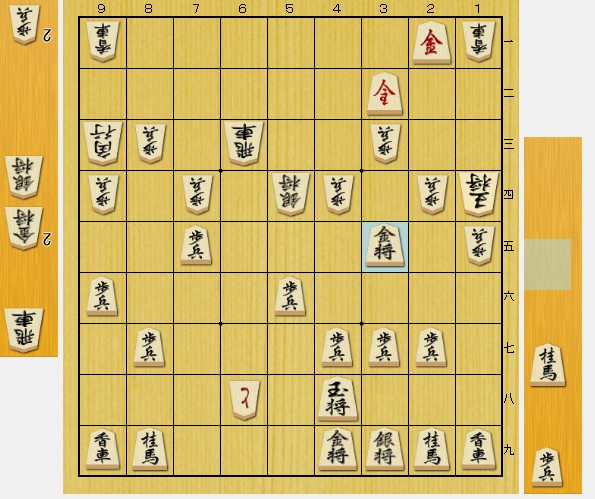 △6八飛成(63) ▲4六玉(57) △3四桂打 ▲同 金(35) △4五金打