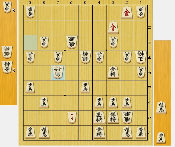 玉を39に逃がさない角出。 下手は駒がなく桂合い(▲57桂)するしかないですが、