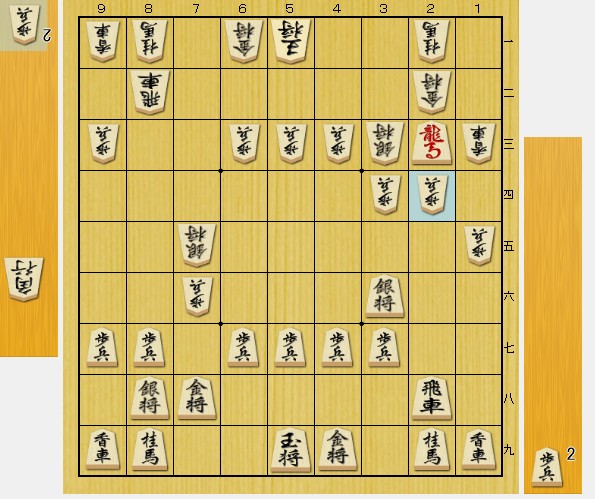 ▲22馬、△同飛 で、駒得&向かい飛車で逆襲できますね。