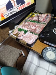 それから今日は、夕方から道場で焼肉パーティーでした。