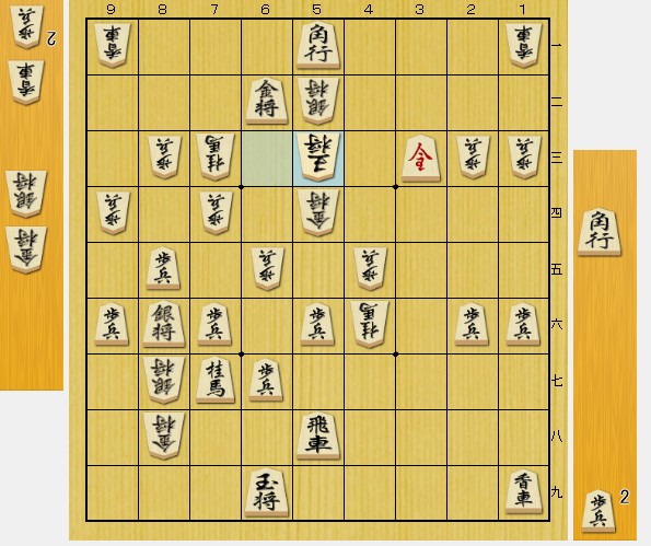▲53角左成、△同銀、▲55金 までの詰め筋。