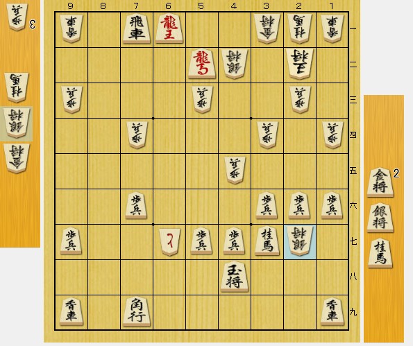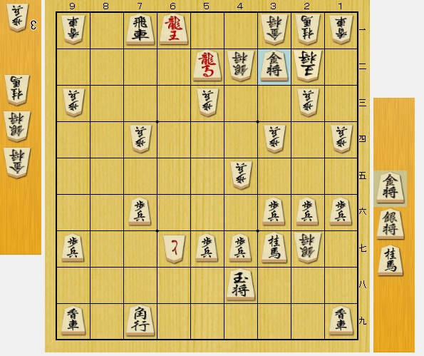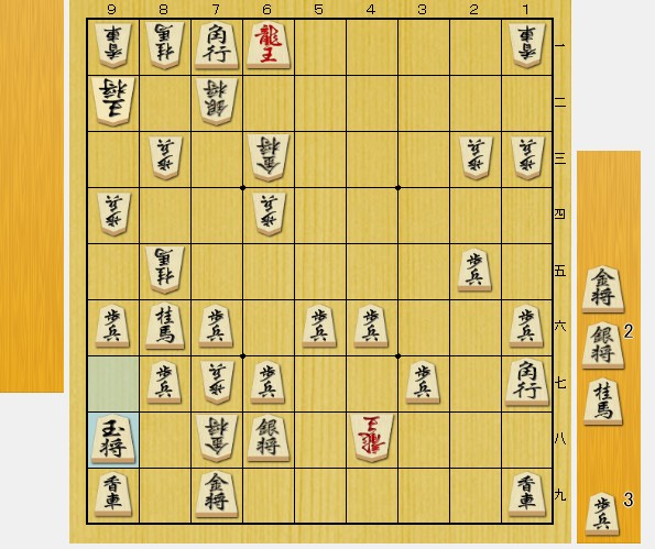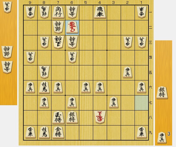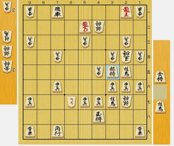 また、対局中は、先手玉は、桂馬と龍でにらまれているので、