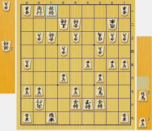 ☖同金→☗8一角打→☖6二玉