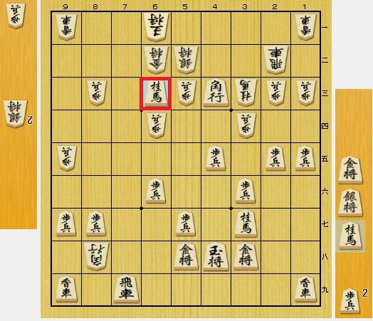 次の先手の再度の☗6三桂打に